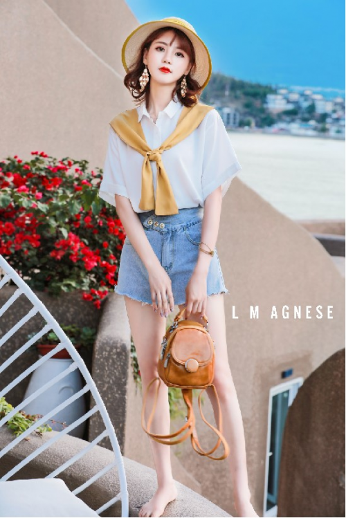 如果长裙还不能抓到你的审美,那么简爱格妮斯的牛仔短裙或许能够唤醒你对这个夏季的憧憬。短裙不规则的裁线设计打破常规,让你在夏日穿搭中变得新潮出众,极具个性。再搭配上一件白T,一个深棕色小包,简约复古而又清爽可爱。这一套装扮就像夏日里的冰西瓜,日常却让人无法抗拒。
